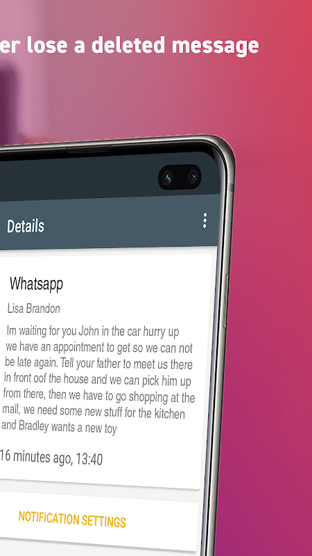 Jetzt verlieren Sie nie eine gelöschte Nachricht. Speichern Sie einen Verlauf der Benachrichtigungen.