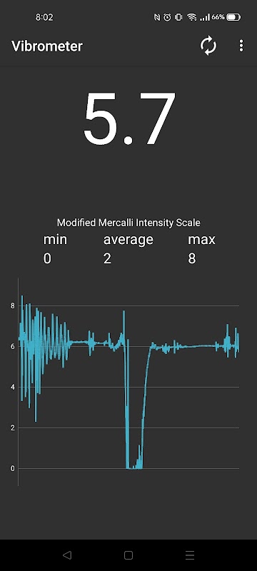 This vibrometer app uses the Modified Mercalli Intensity Scale to show vibration levels.