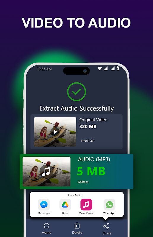 Möchten Sie den Ton eines Videos speichern, ohne die vollständige Datei zu behalten? Verwenden Sie den integrierten MP3-Extraktor für Videos, um ganz einfach Audio aus Videos zu extrahieren. Diese Audioextraktionsfunktion eignet sich perfekt, um Ihre Lieblingsvideosoundtracks, Vorträge oder Reden in Audiodateien umzuwandeln, die Sie jederzeit anhören können. Das Extrahieren von Audio aus Video war noch nie so einfach!