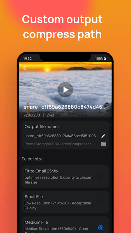 Benutzerdefinierte Komprimierung: Wählen Sie ganz einfach die Zieldateigröße entsprechend den Anforderungen von Gmail, WhatsApp oder anderen sozialen Medien.