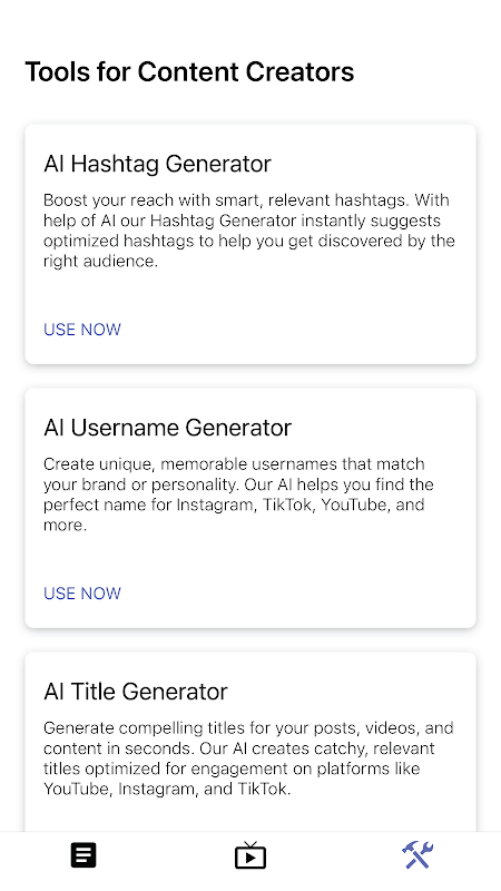 ViralCut ist Ihr mobiles All-in-One-Social-Media-Toolkit zur Erstellung leistungsstarker Inhalte. Dank fortschrittlicher KI hilft ViralCut Influencern, Marketern und Kreativen, in Sekundenschnelle einprägsame Hashtags, fesselnde Titel und mehr zu generieren. Egal, ob Sie Ihren nächsten viralen Reel, YouTube-Short oder TikTok-Beitrag erstellen – ViralCut macht die Content-Erstellung intelligenter, schneller und effektiver. Finden Sie die besten Hashtags für Ihre Inhalte, um Sichtbarkeit und Engagement zu steigern. Erstellen Sie überzeugende, algorithmusfreundliche Titel, die Klicks und Aufrufe generieren, und vieles mehr. Schluss mit dem Rätselraten, was funktioniert. ViralCut bietet Ihnen die Tools, die Sie brauchen, um Ihre Präsenz zu steigern, Inhalte zu erstellen, die ankommen und viral gehen – direkt von Ihrem Telefon aus, kostenlos und ohne versteckte Paywalls. Von Hashtag-Strategien über Videotitel bis hin zu Benutzernamen – ViralCut vereinfacht Ihren Workflow und hilft Ihnen, sich auf das Wesentliche zu konzentrieren: Inhalte zu erstellen, die auffallen. Schnelle und benutzerfreundliche Oberfläche, kein Login erforderlich, saubere Ergebnisse ohne Wasserzeichen, KI, die auf echten Social-Media-Performance-Daten trainiert wurde, und ständige Updates mit neuen Tools und Verbesserungen. Laden Sie ViralCut noch heute herunter und bringen Sie Ihre Social-Media-Aktivitäten auf das nächste Level.