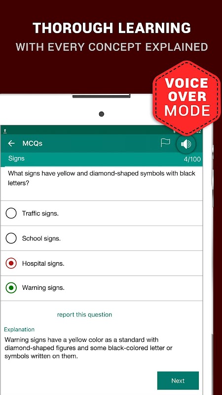 - A complete Flashcards library to get accustomed with the most common road signals, hazard signs and regulatory procedures