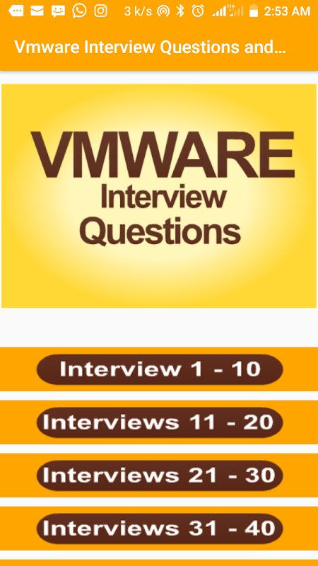 Vmware interview questions app contains the latest interviews questions you may likely be asked during interview. When we talk about Virtualization and cloud computing, VMware has position itself as the top leader in the cloud computing technology world. Vmware also also solutions in the field of network and desktop virtualization .When we talk about software technology, VMware has changed the tech world from physical to software-based virtual world. Using this