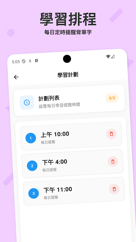 6. Terminplanung, die Sie täglich pünktlich an das Einprägen von Wörtern erinnert.