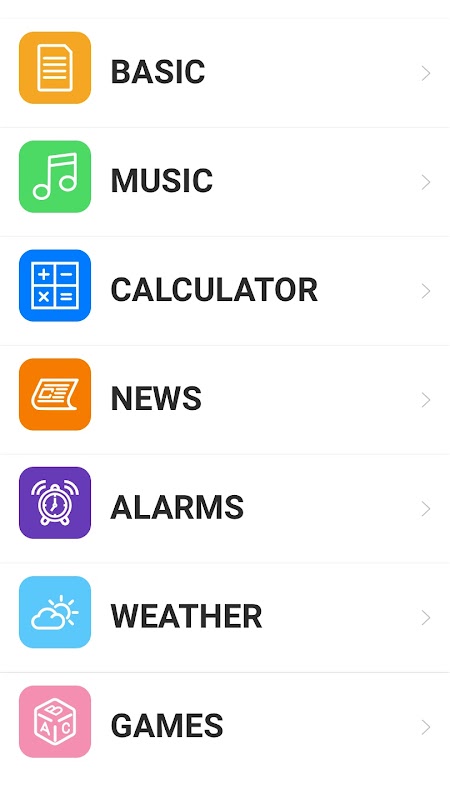 Basic. Einstellungen des Geräts. Musik und Rundfunk. Taschenrechner. Fakten. Wetter. Kalender. Timer und Wecker. Notizen und Erinnerungen. Nachrichten. Navigation. Fahren. Übersetzungen. Anrufe und Nachrichten. Anwendungen. Intelligentes Zuhause. Ostereier.