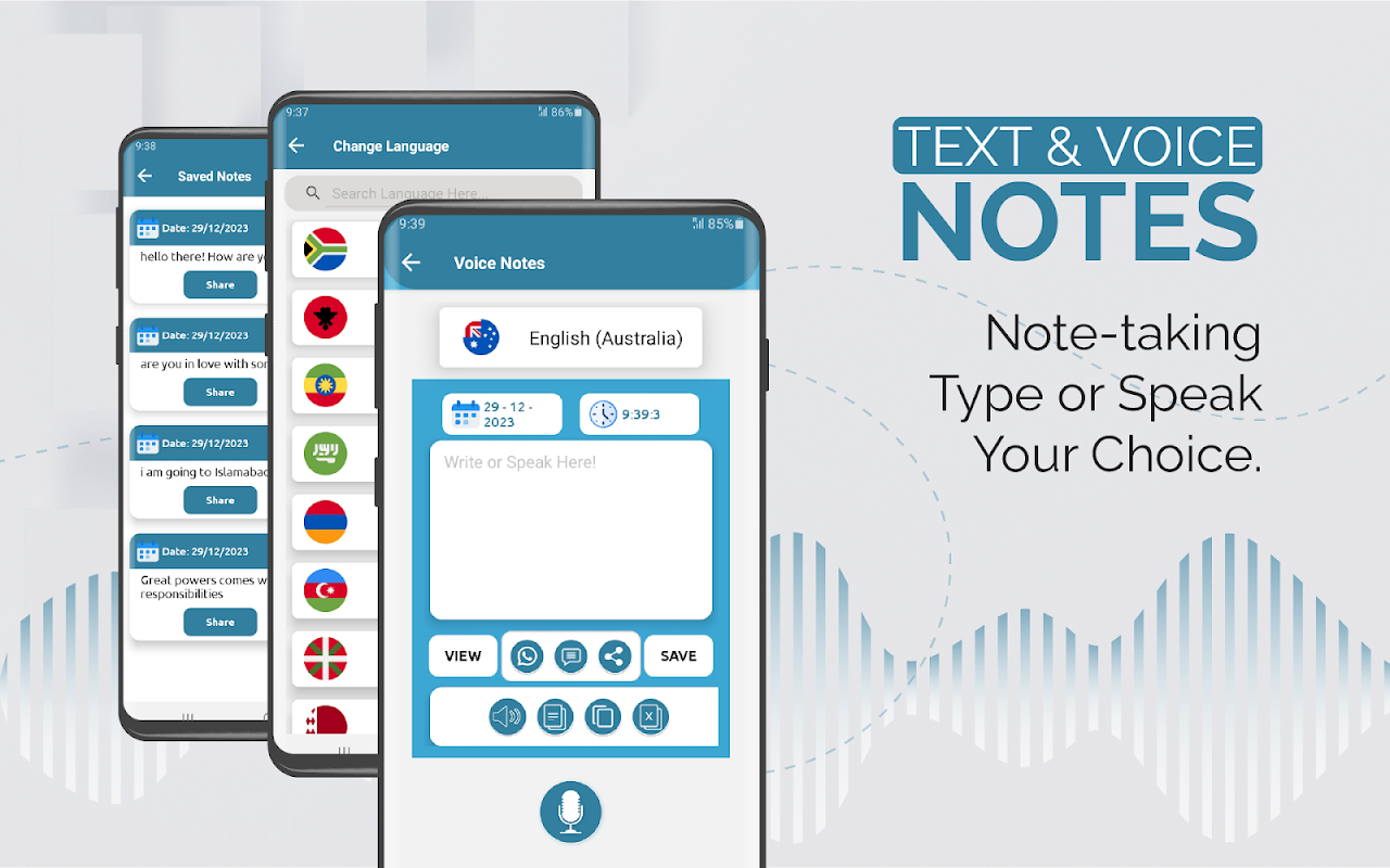 Jetzt können Sie ganz einfach die Sprache ändern, was Speech Notepad zu einem wertvollen Werkzeug für Menschen macht, die weltweit kommunizieren und Sprachen lernen. Mit der Funktion „Sprachnotizen transkribieren“ in der App „Sprachnotizen und Haftnotizen“ können Sie lange Sprachaufzeichnungen mühelos in Text umwandeln. Wenn Sie Interviews führen, Vorträge aufzeichnen oder Ihre eigenen Gedanken notieren, sorgt Simple Notepad Transcribe Voice Notes dafür, dass Ihre gesprochenen Worte mit nur wenigen Fingertipps lesbar werden.