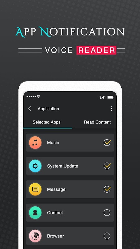 - Select the apps of which you would like us to read out load notifications.