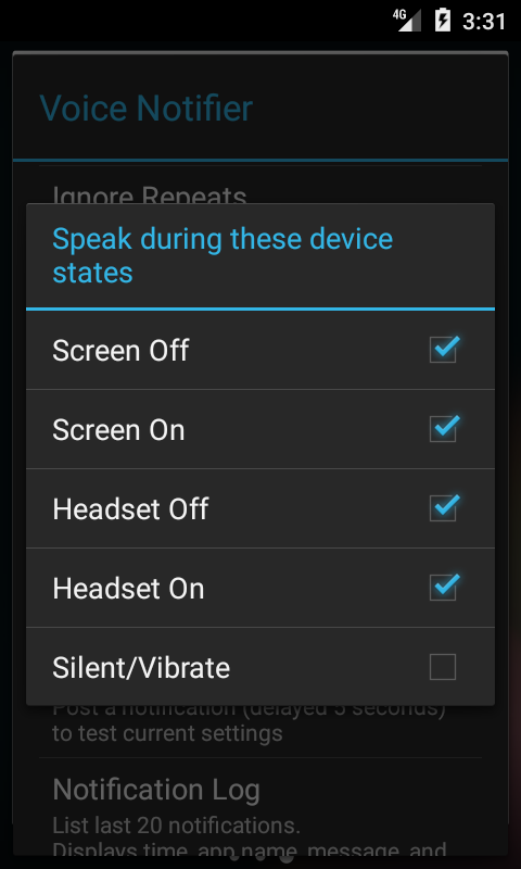Voice-Notifier gibt die Statusleiste Benachrichtigung Nachrichten mit Text-To-Speech (TTS), so dass Sie wissen, was eine Meldung sagt, ohne Blick auf den Bildschirm.