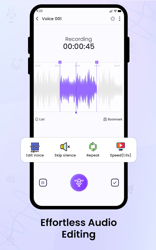 Bearbeiten Sie Ihre Aufnahmen ganz einfach mit den leistungsstarken Audiobearbeitungstools der App. Schneiden, beschneiden oder fügen Sie Aufnahmen zusammen, um individuelle Clips zu erstellen oder unerwünschte Abschnitte zu entfernen. Verbessern Sie Ihre Aufnahmen, indem Sie die Wiedergabegeschwindigkeit anpassen oder Audioeffekte anwenden.