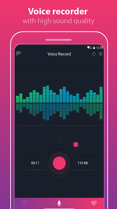 Voice Recorder unterstützt zwei gängige Dateiformate: MP3, Wav. Die Qualität der Aufnahme ist sehr hoch.