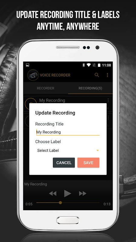 ► Manage labels- Benutzer leicht kategorisieren können Dateien der Aufnahme, während sie zu speichern. Wählen Sie einfach die Kategorie Label wie persönlichen, geschäftlichen Treffen oder eine Kategorie in der eigenen wie Interviews erstellen, Vorträge, Memo, Konzert, Meetings, Vorträge usw.
