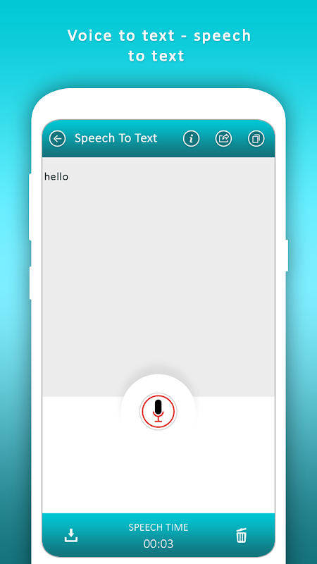 Voice to Text - Speech to Text App will convert in text, dictation, sms writing wasn’t so easy before, this application is free Android Speech to text application for all android users to dictating text from speech or oral conversation to text, and that can be easily sent via SMS or Email and can be copied & paste into another social media application.
