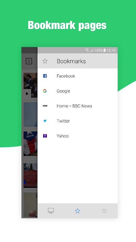 Speichern Sie Ihre bevorzugten Websites in der schneller browser Anwendung