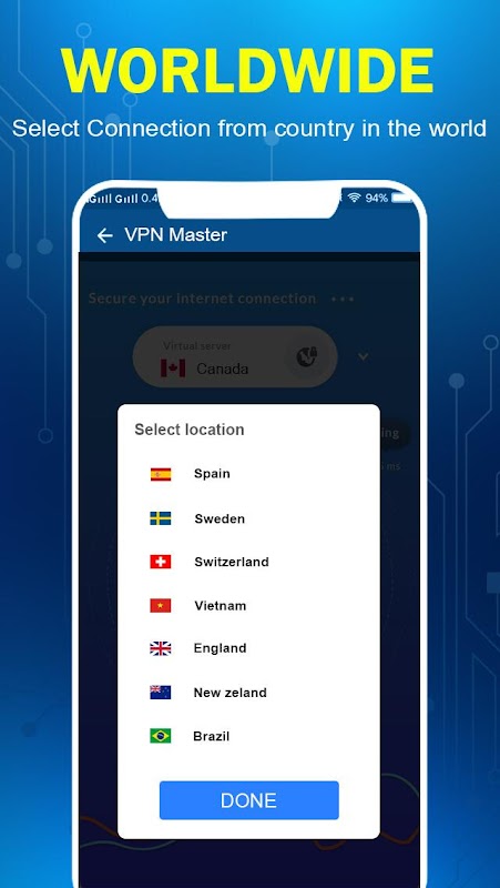 VPN Master has global VPN network, such as, America, United Kingdom, France, Germany, Singapore, Japan, Korea, etc. All the proxy servers are FREE to use,
