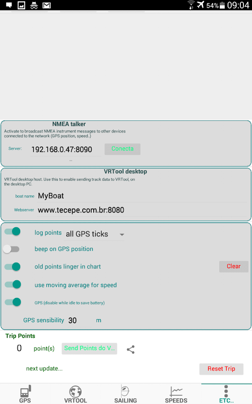 Kumpan kann auch als NMEA Talker handeln konfiguriert werden, GPS-Nachrichten an anderer Software sendet, um das Boot TCP / IP-Netzwerk verbunden mit dem Boot Wi-Fi.
