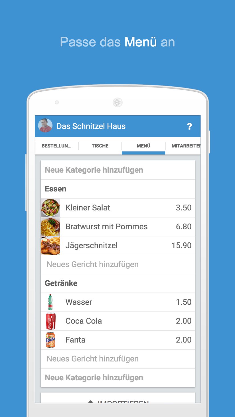Passe deine Speisekarten mit Kategorien und zusätzlichen Extras an und teile es mit allen anderen Mitarbeitern.