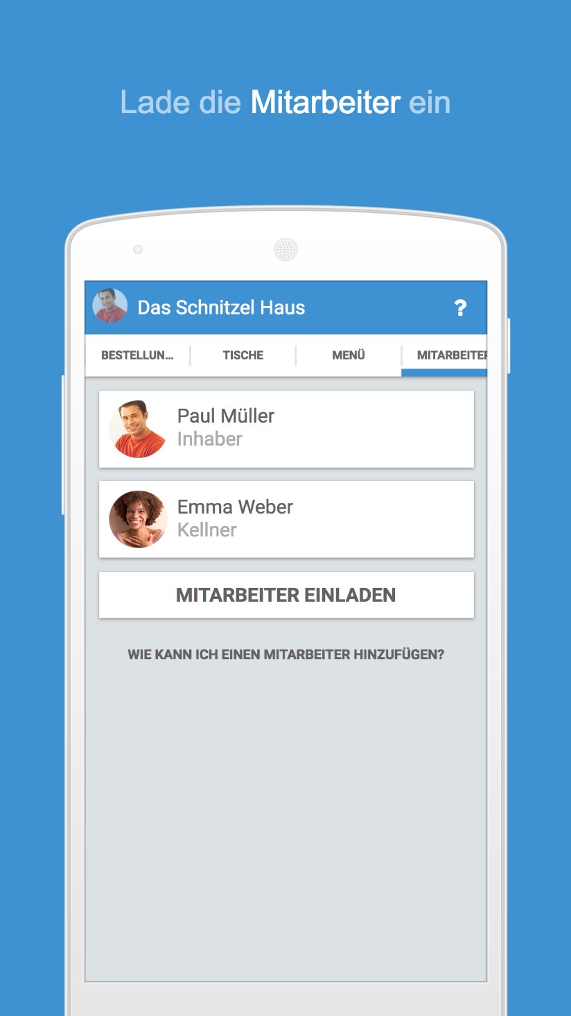 Lade deine Kollegen dazu ein, Waiterio zu nutzen, damit Bestellungen und Menüs automatisch geteilt werden können.
