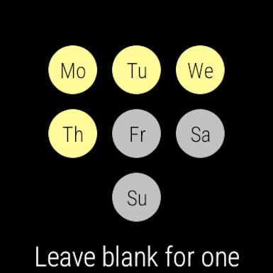 Für weitere Optionen wischen sie danach nach rechts. Das Zeitfenster bestimmt die früheste Zeit, an der Sie der Alarm aufwecken könnte - abhängig von Ihrer Schafphase. Nach dem Einstellen des Zeitfensters können Sie ein weiteres mal nach rechts wischen und die Wochentage antippen, an denen der Alarm wiederholt werden soll. Falls Sie nur einen einzelnen Alarm wollen, lassen Sie alle Wochentage unselektiert.