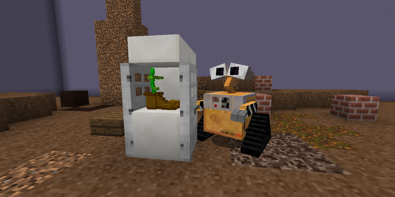 Wall-e Mod is a very cute addition to your pixel world! You know this cartoon character! He moves and functions well! Fans of the touching story will love it, because in real life you will not see such a small robot. Add beautiful characters to the atmosphere of your virtual universe! The new pocket edition app will give you a lot of impressions! You just have to try!