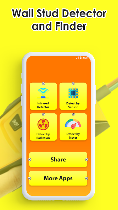 Wall Stud Detector and Finder is the most useful application for detecting and finding nuts and bolts, screws, pipe studs, cables, joists, and fasteners through our application. This application works offline where users do not require an internet connection for it. It is easy to use and can quickly detect and find studs and other hidden objects. When you open the app, you'll see multiple features for detecting studs and fasteners, the features are like;