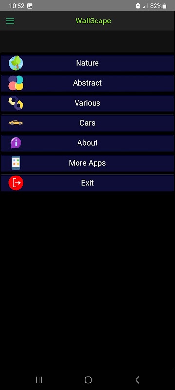> Die Anwendung bietet vier Listen mit zahlreichen Kategorien, um die besten Hintergrundbilder Ihrer Wahl auszuwählen