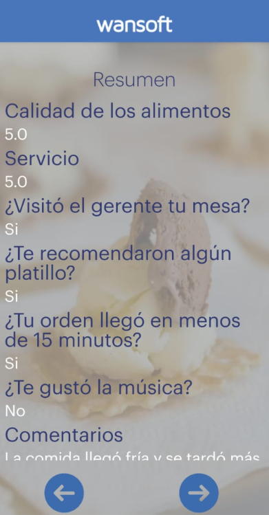 ¡Lleva a tu restaurante la app de encuestas exclusiva para la comunidad Wansoft! Es muy sencillo - Crea encuestas en tu módulo Web, y aplícalas a tus comensales desde cualquier dispositivo Android. Da la oportunidad a tus comensales de expresar su opinión sobre la experiencia en tu restaurante y busca como mejorarla. Monitorea los resultados en tiempo real y recibe notificaciones cuando te califiquen con resultados desfavorables. Es súper sencillo: 1. Crea la encuesta en tu módulo Web (encontrarás varios tipos de preguntas - con estrellas, con opciones, con campos abiertos) 2. Descarga la app y ábrela con tu username y password 3. Aplica la encuesta a tus comensales 4. Recibe feedback de tus comensales en tiempo real. Si aún no eres miembro de la Comunidad Wansoft ¡puedes escribirnos para empezar a disfrutar de todos los beneficios que tenemos para ti! [email protected]