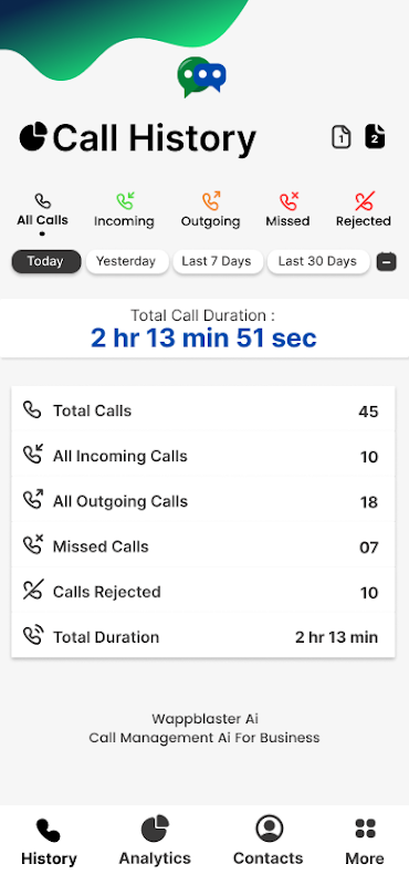 Wappblaster CRM für die Anrufverwaltung speichert alle Anrufprotokolle im Online-Panel in wappblaster crm.