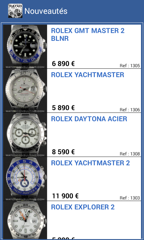 Cette application vous permet de vous connecter de la manière la plus simple avec un responsable de notre boutique. Un seul clic sur un bouton et vous envoyez soit un e-mail, soit vous êtes au téléphone avec Watchconsulting et comble du raffinement, vous pouvez dans votre e-mail débattre le prix de la montre dont vous rêvez…
