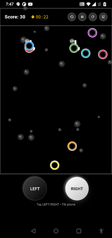 – Gyroskop-Steuerung: Neigen Sie Ihr Smartphone, um die Ringe zu steuern