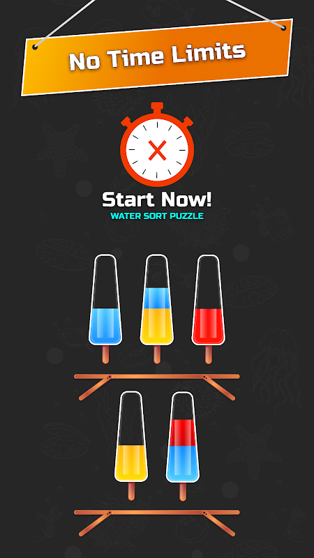 Du kannst die leeren Eis am Stiel verwenden, um unerwünschte Wasserfarbe zu entfernen. Durch präzises Farbsortieren kannst du jedes Eis am Stiel beenden. Da es in diesem Spiel keine Timer gibt, musst du dir keine Sorgen um Strafen machen. Plane einfach deine Wassersortierstrategie und gelange zum nächsten Level.