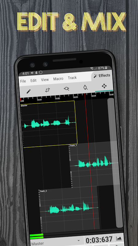 WaveEditor für Android™ ist ein professionelles Tool zum Bearbeiten, Aufnehmen und Mastern von Audio unterwegs. WaveEditor unterstützt außerdem eine Vielzahl von Dateitypen, wodurch es sich für die Konvertierung von Audioformaten und die Medienwiedergabe eignet.