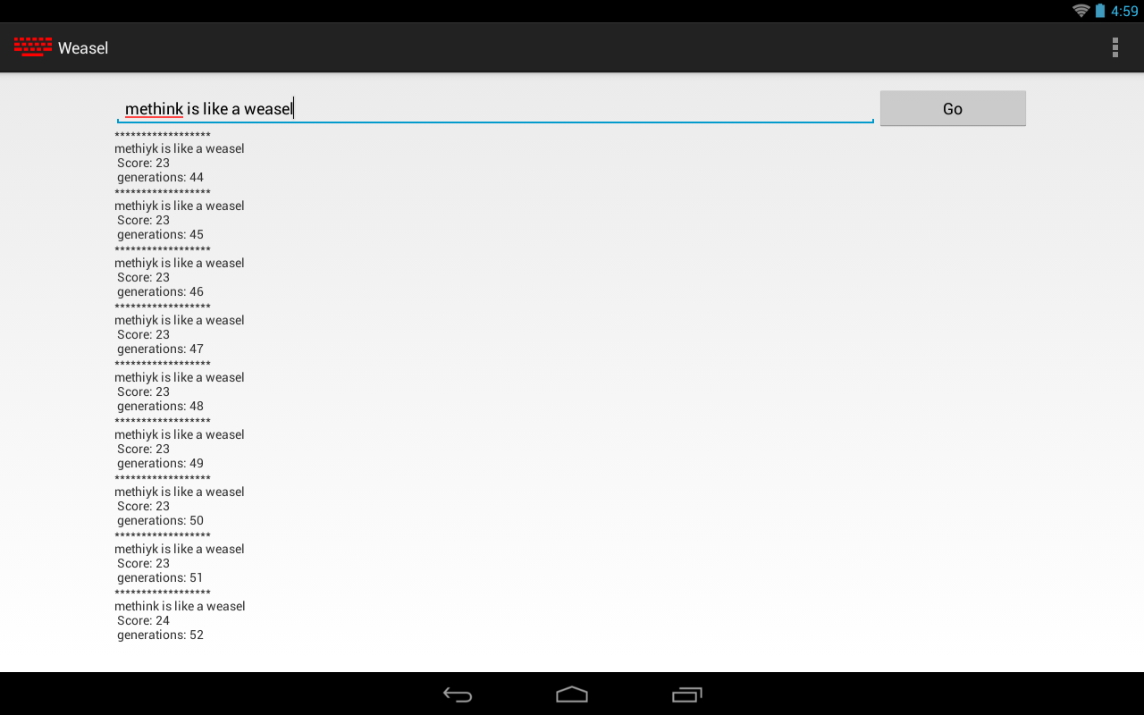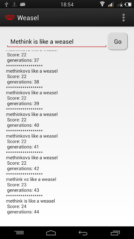Dieses Konzept wurde zuerst in der Original Weasel-Programm von Richard Dawkins erläutert.