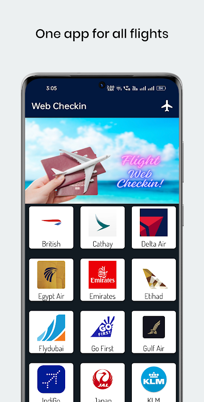 Warum mehrere Airline-Apps installieren, wenn eine App alles kann? Flight Web Check-In vereint die Online-Check-in-Services von Dutzenden Fluggesellschaften weltweit und spart Ihnen Zeit, Speicherplatz und Aufwand.