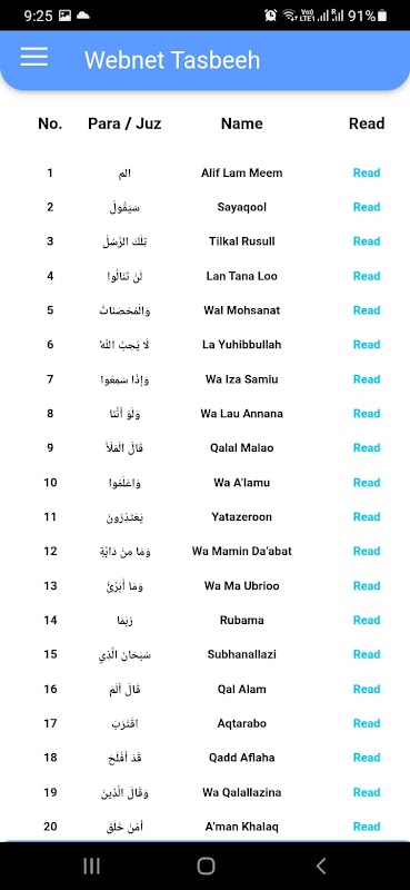 Die offizielle Webnet-Tasbeeh-App enthält Folgendes: