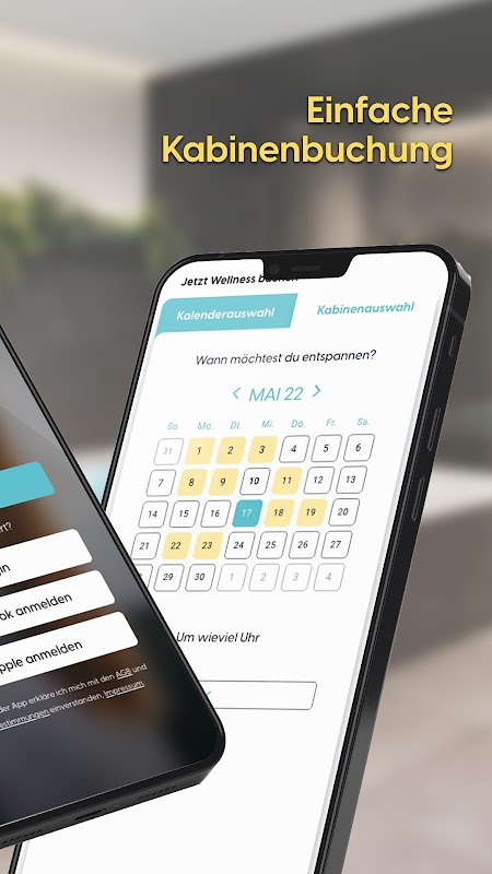 Buche ganz einfach Deinen Aufenthalt, verwalte Deine Buchungen direkt über die App und checke dich vor Ort in deine private Wellness Kabine ein.