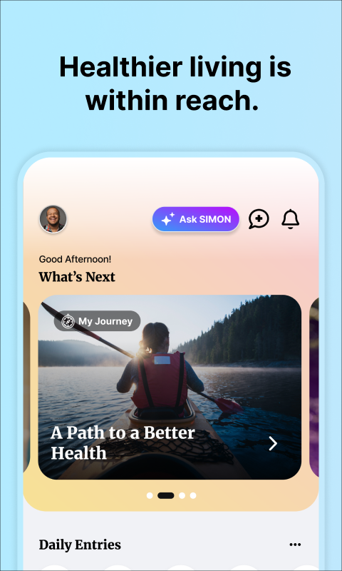 • Simon, einem KI-gestützten Chatbot, der Ihnen rund um die Uhr als persönlicher Begleiter zur Seite steht.