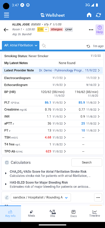 Wellsheet unterstützt den Anbieter-Workflow mit intelligenten Funktionen wie Smart Notifications, Handoff und Storyline, einer intuitiven Möglichkeit, die vollständige Krankengeschichte eines Patienten auf einen Blick anzuzeigen. Anbieter können wichtige Medikamente, Labors und Vitale entwickeln, benachrichtigt werden, sobald die Konsultationen abgeschlossen sind, und im gesamten Pflegeteam problemlos zusammenarbeiten.