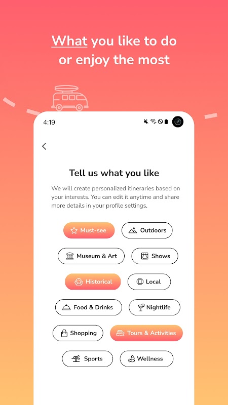 - Ersetzen Sie Attraktionen oder Restaurants durch andere unter demselben Ziel