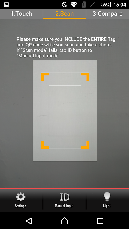 Verwenden Sie die WeTrusty-APP, um das Faced Passport Tag und den QR-Code zu scannen. Sollte das Scannen fehlschlagen, können Kunden in den manuellen Modus wechseln und die Tag-ID-Nummern eingeben, um das vom WeTrusty-Dienst bereitgestellte authentifizierte Bild zu erhalten