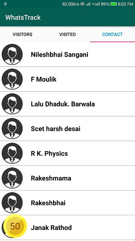 Curious to find who checks your whatsapp profile? this app will help you to find who visit your profile using some contacts algorithm hence result is not 100% accurate.