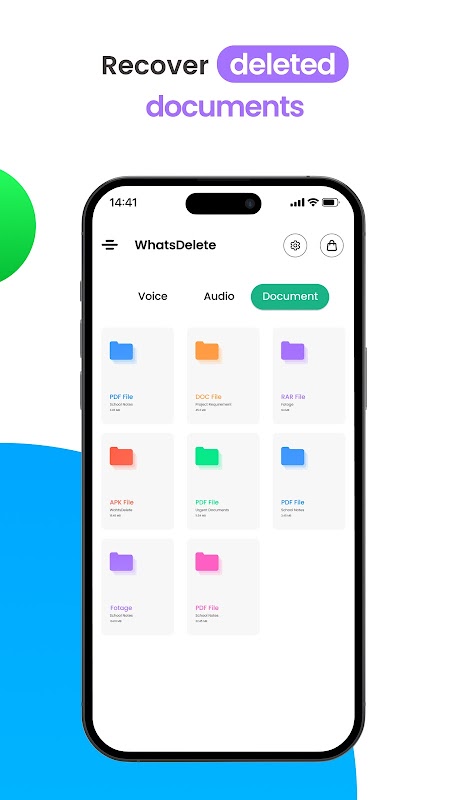 Gelöschte Fotos und andere Medien wiederherstellen Stellen Sie gelöschte Fotos, gelöschte Videos, animierte GIFs, Audiodateien, Sprachnotizen, Dokumente und Aufkleber wieder her.