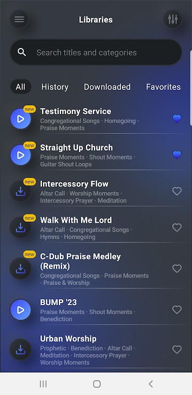- Wischen Sie nach links und greifen Sie sofort auf 4 Ebenen der Anbetungsmusik zu, zwischen denen Sie jederzeit wechseln können! Sie können auch die Tonart und die Tonhöhe nach Belieben ändern.