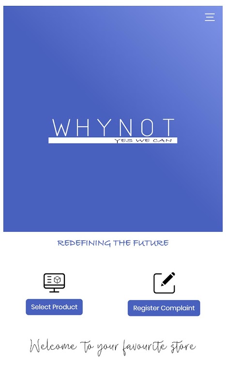 Whynot Application kann Produkte buchen und Servicereklamationen registrieren.