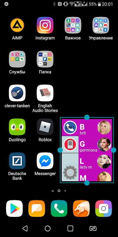 Using our application you can create the widget on the main screen with different groups not only for quick calls and SMS but also for opening contacts in popular messengers such as WhatsApp, Viber or Telegram (only in case these apps installed on your phone).