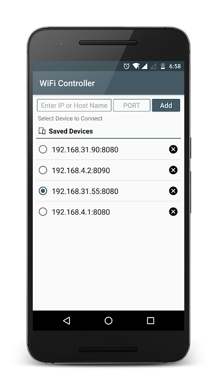 -Um eine Verbindung mit Gerät müssen Sie IP & PORT von Gerät hinzufügen und auswählen.