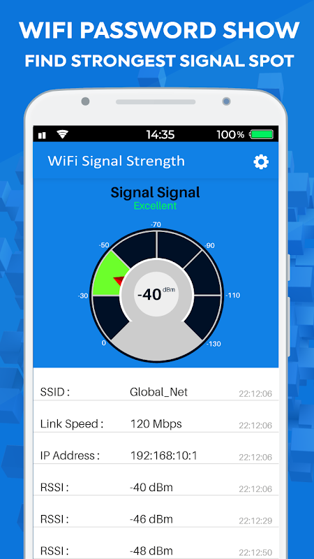 Wifi Passwort Master Key Show ist eine einfache und kostenlose Wi-Fi Passwort Master Key Viewer App. Wifi-Passwort-Hauptschlüssel hilft, die gespeicherten Wi-Fi-Passwörter vom Gerät anzuzeigen. Sie können die Geschwindigkeit beim Hoch- und Herunterladen von WLAN-Daten mit einem Klick überprüfen. Die Wifi-Analysefunktion hilft Ihnen bei der Überprüfung der WLAN-Signalstärke, der Ansicht der Zugangspunkte und der geschätzten Entfernung zu den Zugangspunkten.