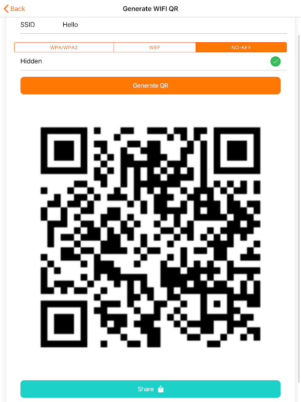 - Beim Generieren eines WIFI-QRs, wenn Sie mit einem WLAN-Netzwerk verbunden sind, wird das SSID-Feld automatisch ausgefüllt.