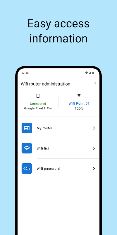 Darüber hinaus ermöglicht Ihnen unsere App die Generierung sicherer Passwörter, einschließlich Standards wie WPA3, WPA2, WPA und WEP, zum Schutz vor unerwünschtem Zugriff.