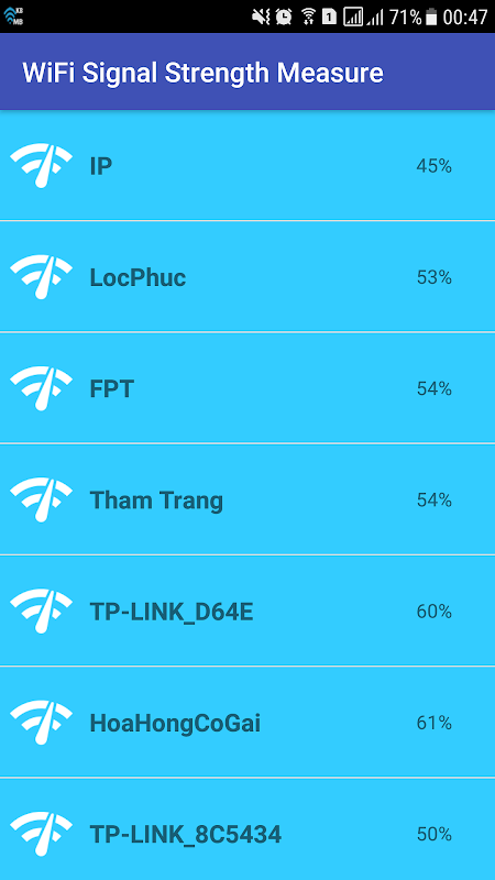 This app is a tool that allows you to view your current WiFi connection signal strength.