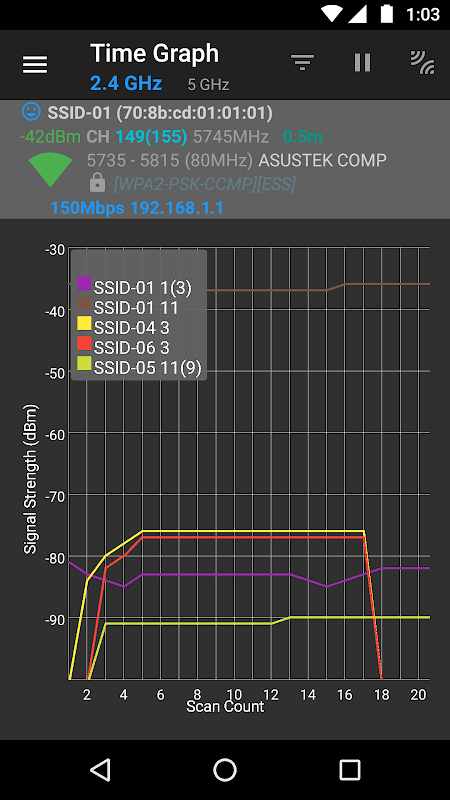 - Tap the title bar to switch between 2.4 and 5 GHz WiFi band.